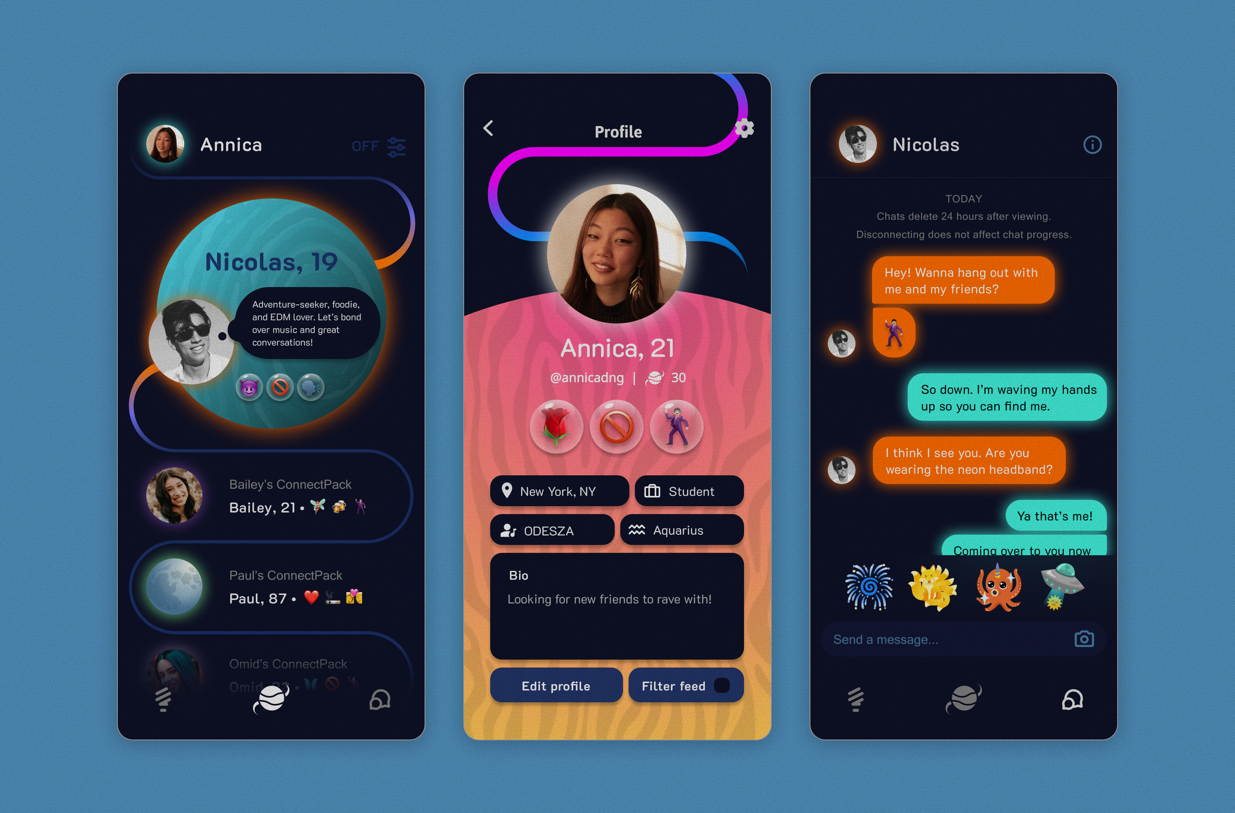 App to enhance the music festival experience. Connect with nearby concert goers.